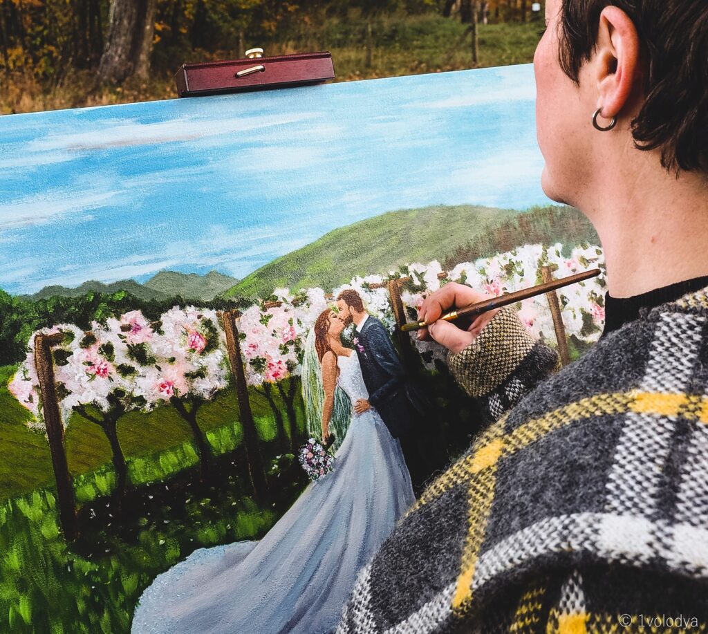 Experience the magic of live wedding painting with Meghan. Watch as your love story is transformed into a unique, one-of-a-kind masterpiece right before your eyes. Make your wedding truly unforgettable. Reserve your date now.