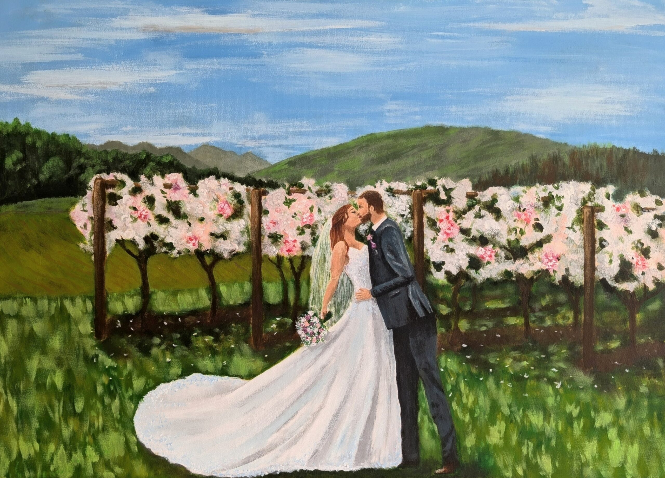 Explore Meghan’s captivating live wedding painting portfolio, where each piece tells a story of love and celebration.